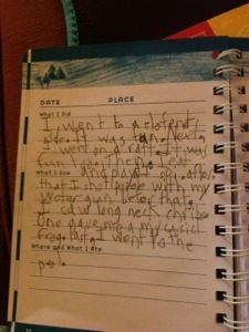Today we got up erly (early) and went to see the mongs. We fed the mongs. Mongs are peple (people) that teach other people to be good. Then I went to the temple. I had a picnic at the gem fatry (factory), I saw 800 yars old pgota (pagoda), it had big stachue (statue) of Buddha. I went to a night market, I bought a set of Ninja. I took a tuk tuk. I went to a silk fatry (factory). Mofs (moths) make silk.