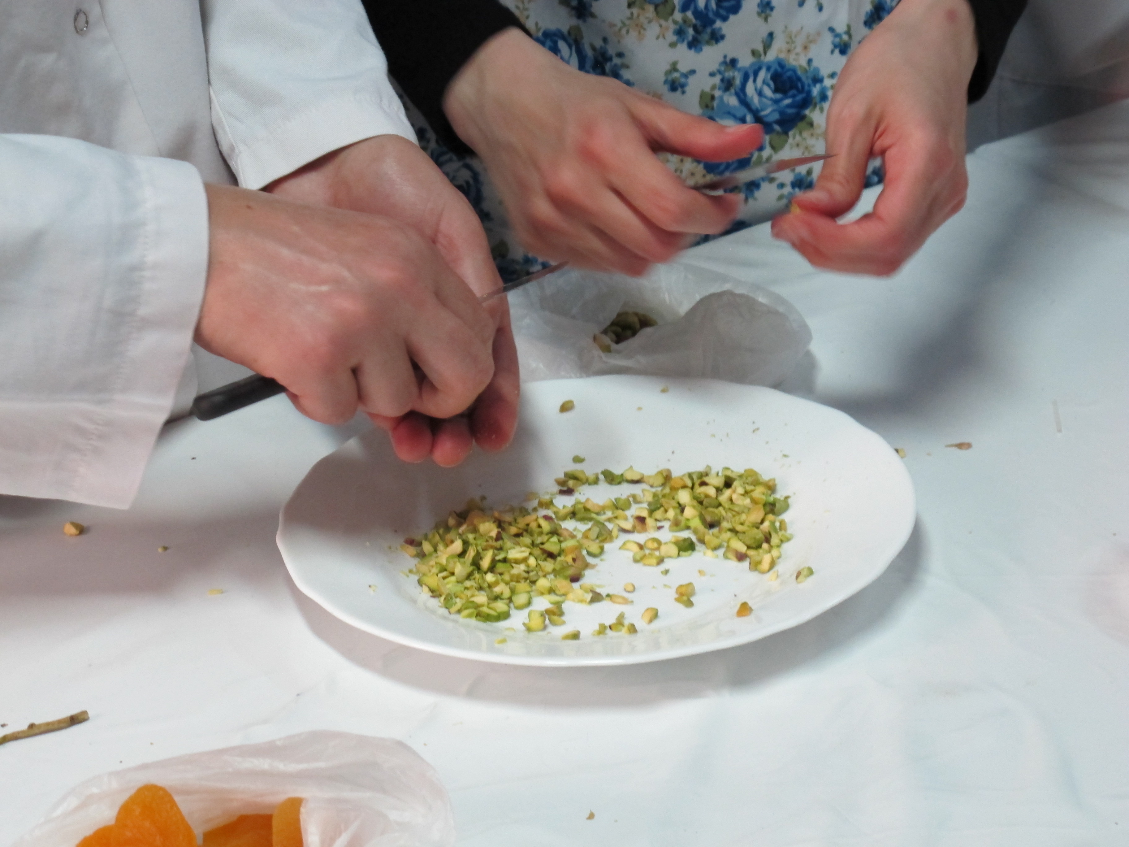 cutting pistachios by hand