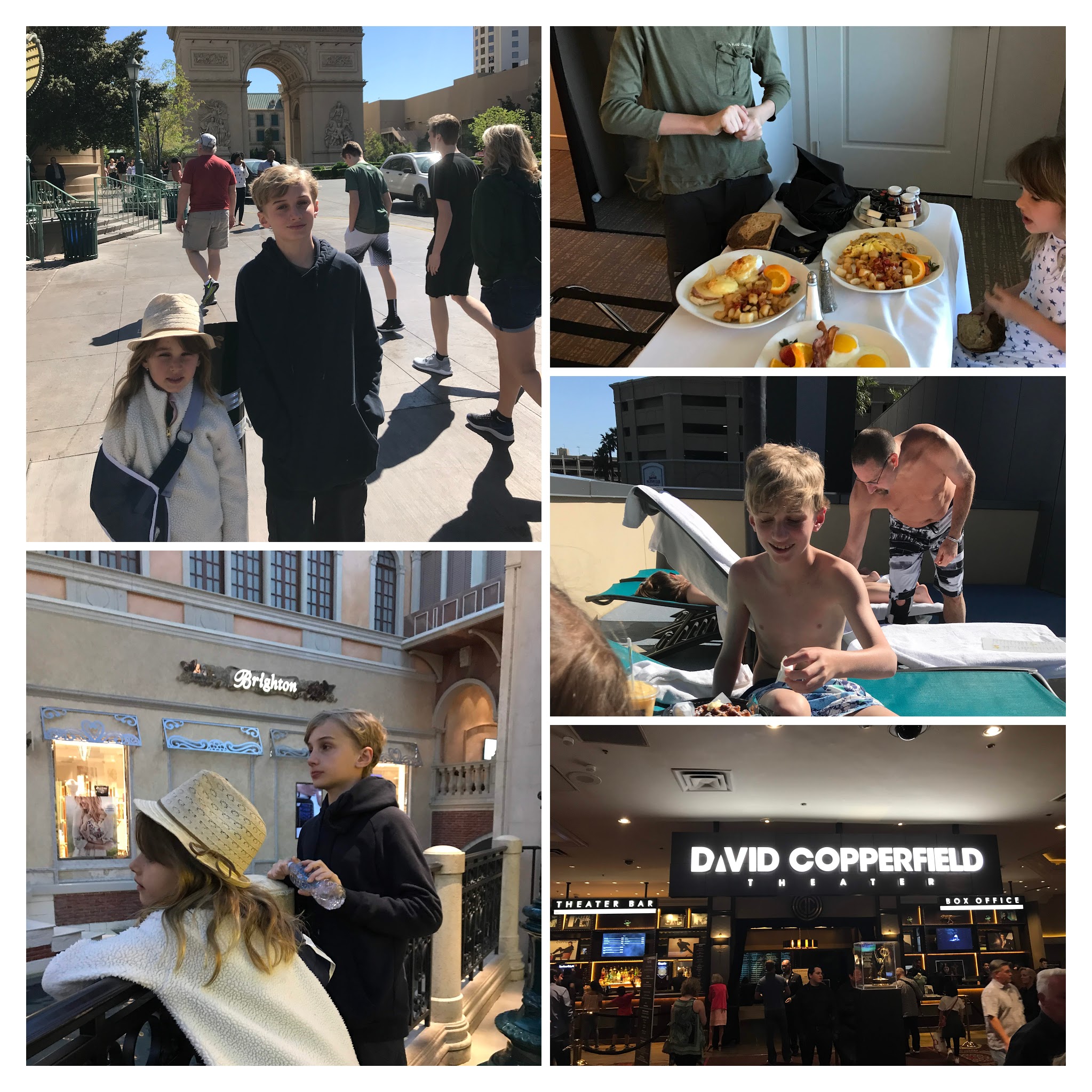 We landed in Vegas, made our way through super long bus to car rental that felt like desert tour and got into Elara Hilton at 2 am. It doesn’t feel like arly am in LV as everything is alive all the time – but we were exhausted. Two nights and one day in Vegas felt like plenty – we walked the Strip, took the tourist pictures, walked thru the shops. Lucas was obsessed with shopping b/c supposedly buying normal American clothes in Vegas is waaay better than in Atlanta – go figure. Mia was obsessed with little escort cards on the floor everywhere and giggling that the girls are naked. Way to learn about the oldest trade in the world. Thumbs up for awesome parenting. David Copperfield was our only real entertainment, besides sitting by the pool, ordering room service and enjoying the sun. Have to give it to the first magician I saw in Prague, he still has it and pretty impressive stuff with engaging audience and mind blowing tricks.