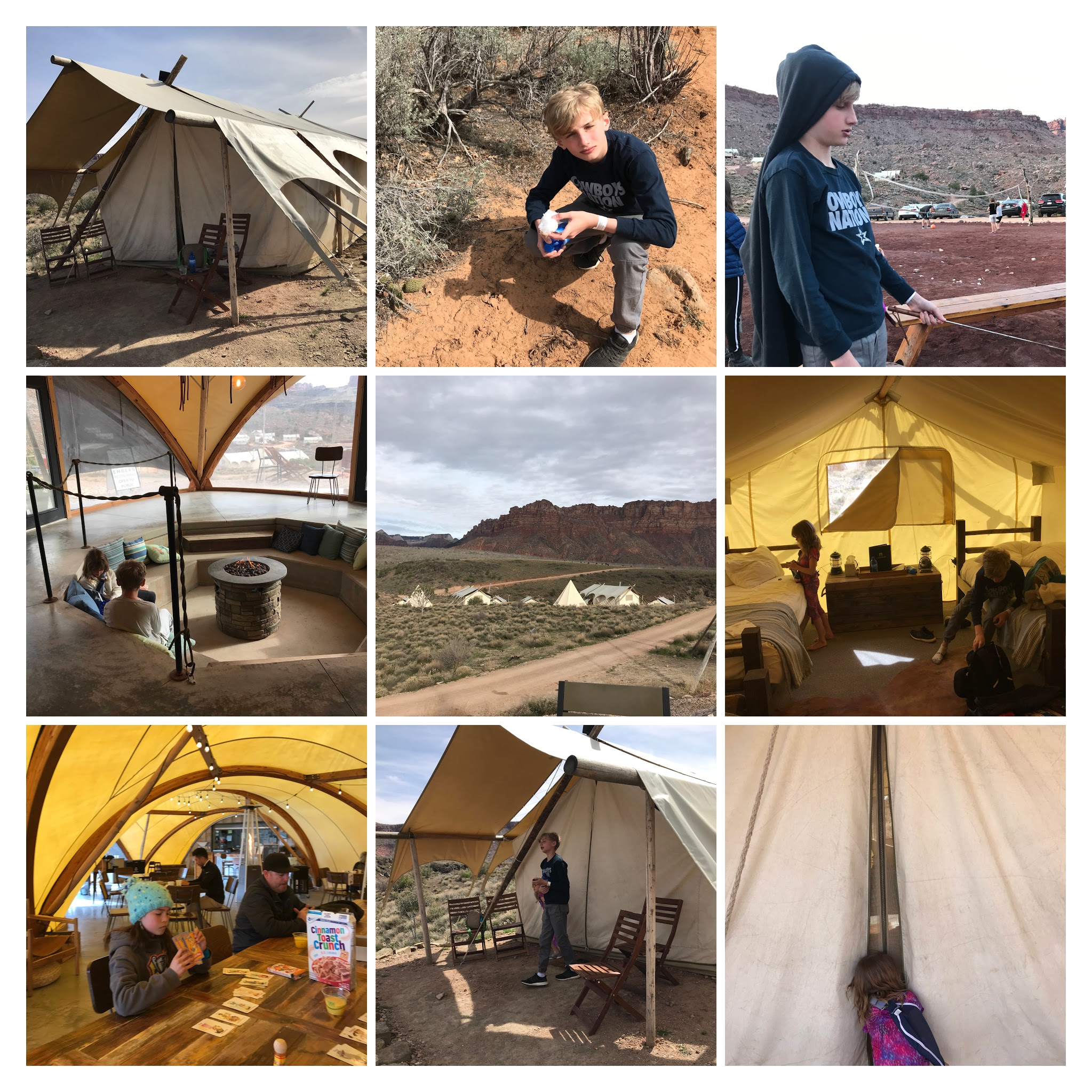 Our roadtrip started on our way to Zion National Park. We were psyched for this stop because we were going to “rough it out” in a tent. Well, we didn’t – we glamped it out, all the way through. Under Canvas was absolutely awesome – except the initial itsy bitsy conversation with the girl showing us our tent. She made a tiny comment at the end – “close your tent as we have wildlife”. Me, suspicously “so just curious, what kind of wildlife?” – hoping for cows, coyotes, buffalos – something big. Ah – not so much, her response was “tarantulas, scorpions and ……” she said some large animal that I didn’t hear at all b/c my brain went on overdrive about all the scenarios of insects climbing into my bed. Lovely, this is going to rock! I can foresee very relaxing night sleep – not.