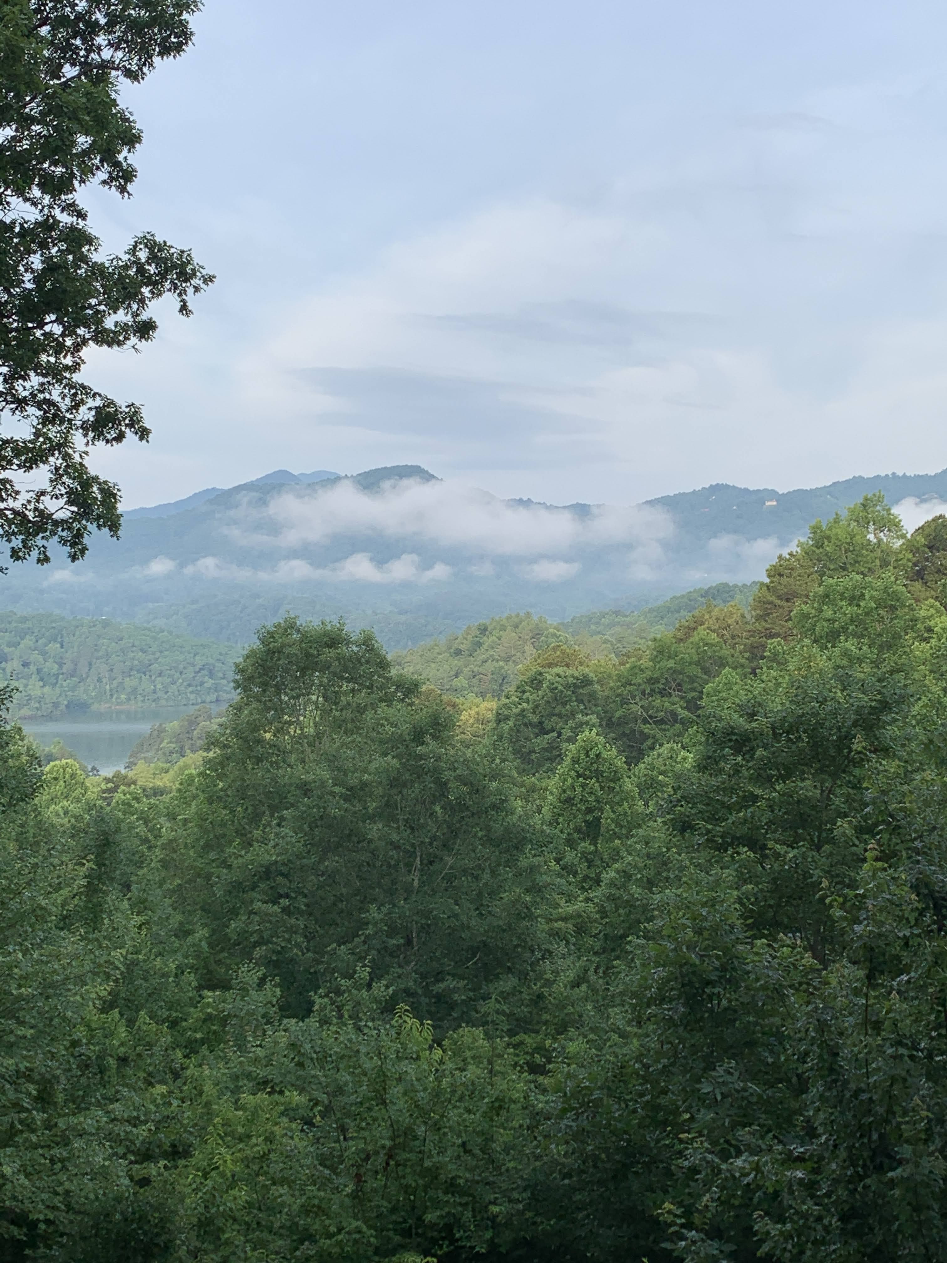 Before we all head out different directions for a month we decided to do a family weekend getaway in nature. So, 3 hours of driving north and Bryson City, NC it was. We got lost on the way to our Airbnb b/c it was on the top of the mountain – and yeah I navigated us thru 20 miles of serpentines. Of course, the only person who got queasy was me because I was the one staring at the phone, navigating. The bassets, always nervous wrecks in the car, were whining and Ruby decided to jump the ship from 3rd row to 2nd row to protest. Wild expedition so far.