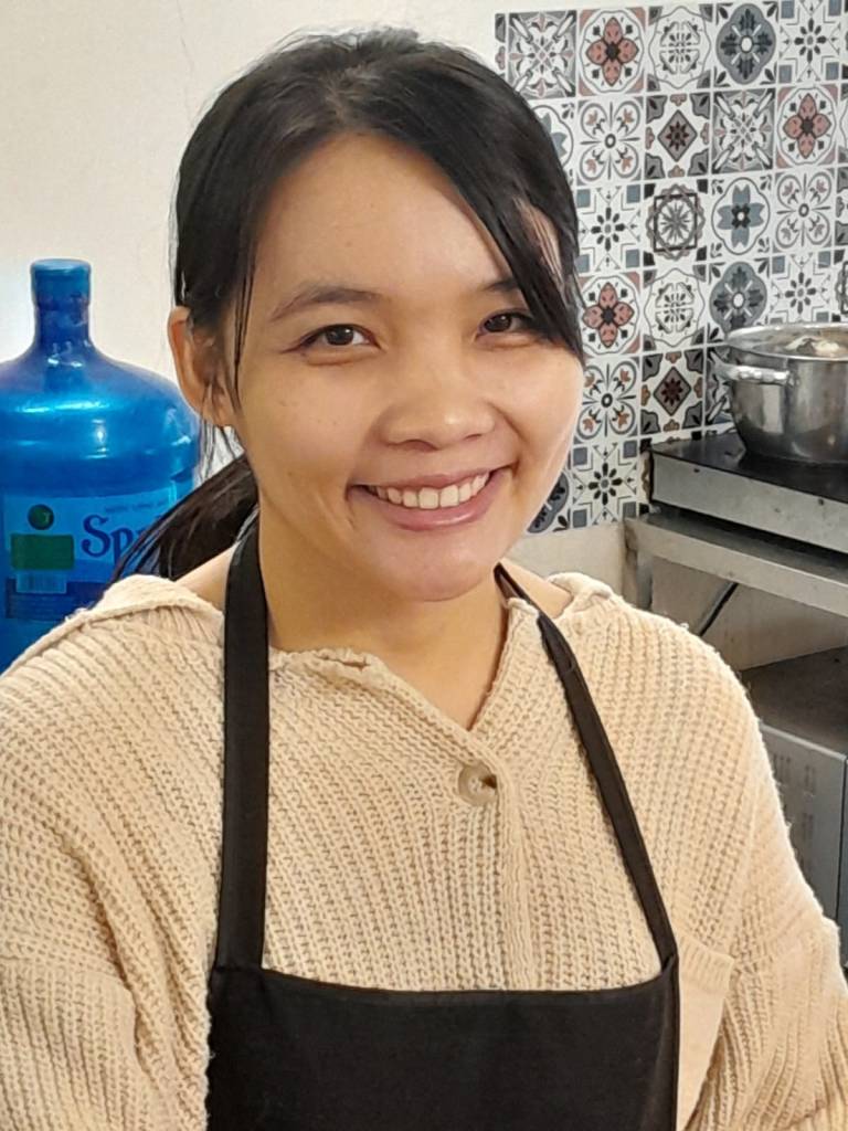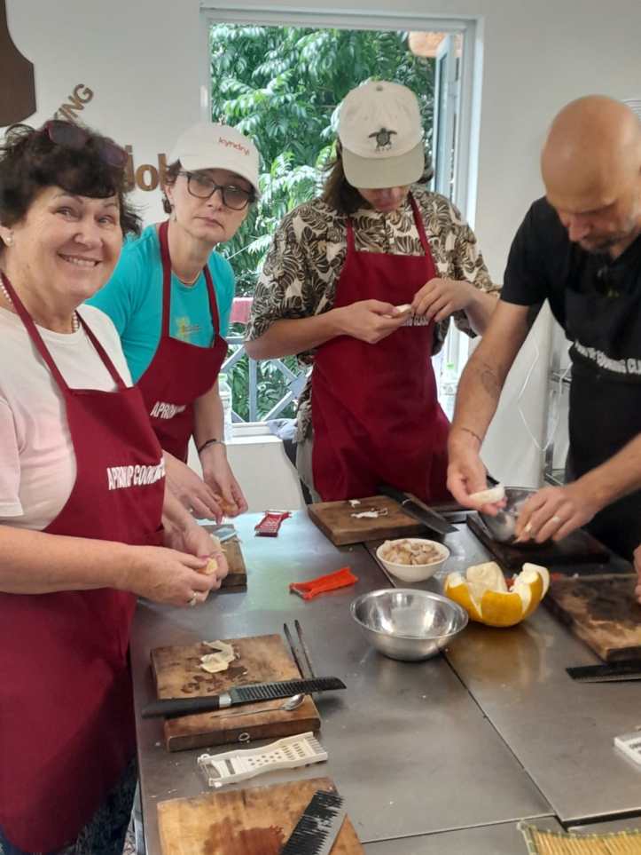 We put on aprons and stood around a large table to cut, chop and listen. I won’t go through how to cook it as I don’t remember it all but here are my observations and things I didn’t know: