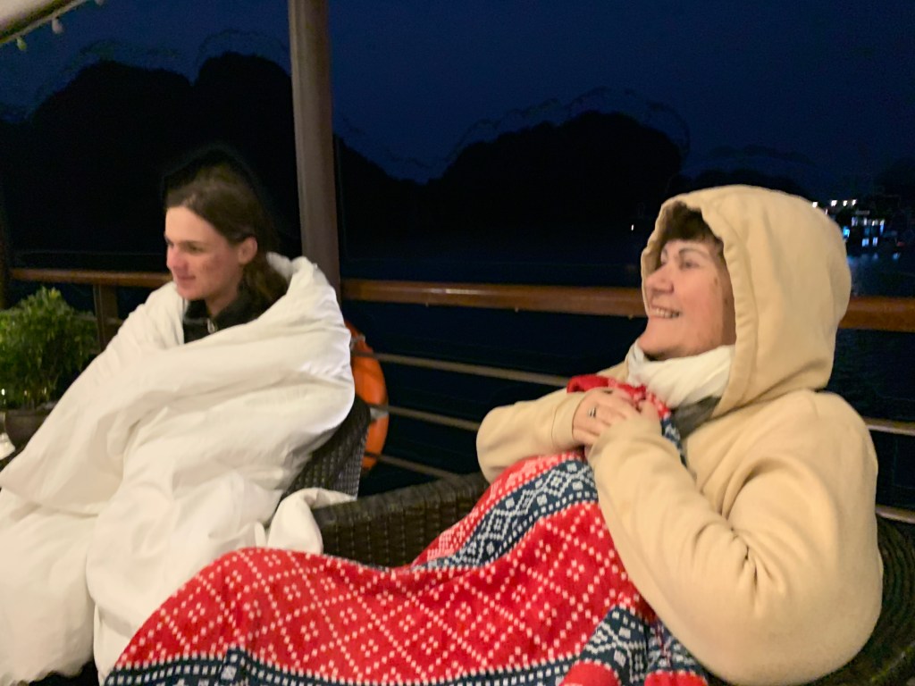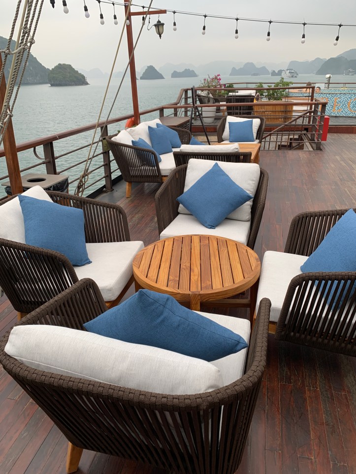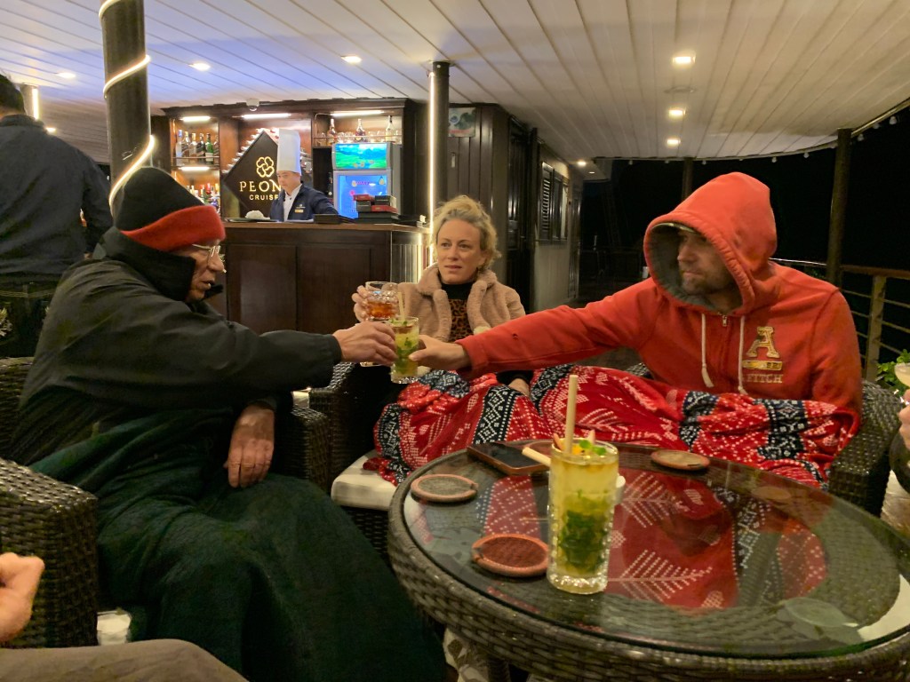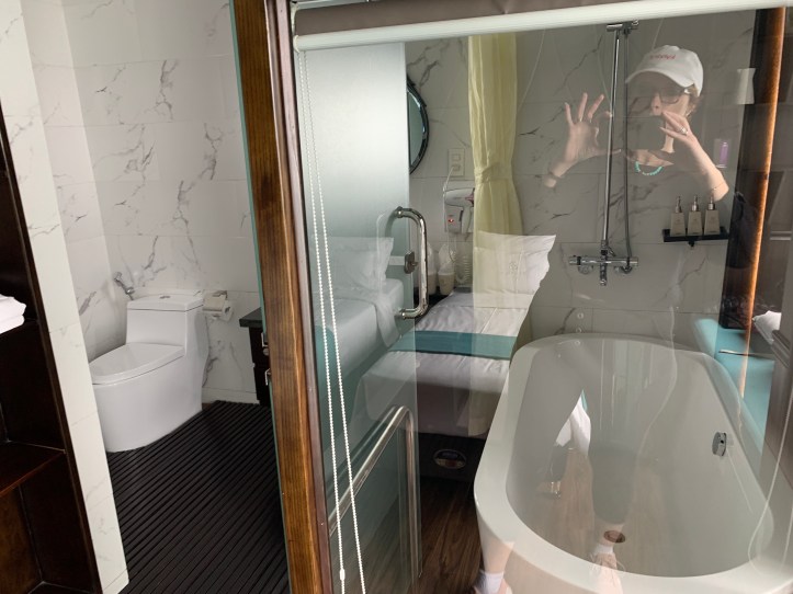 Paloma Cruise nailed it. Picked us up in Hanoi in fancy van for the 2 hours drive and then took us 30 mins out to the bay to board the ship. It was a bit of a guessing game as we passed multiple ships of various and dubious quality as to which one is ours – Petr and I kept looking at each other hoping this barge is not it, keep moving – until we got to ours, Peony.