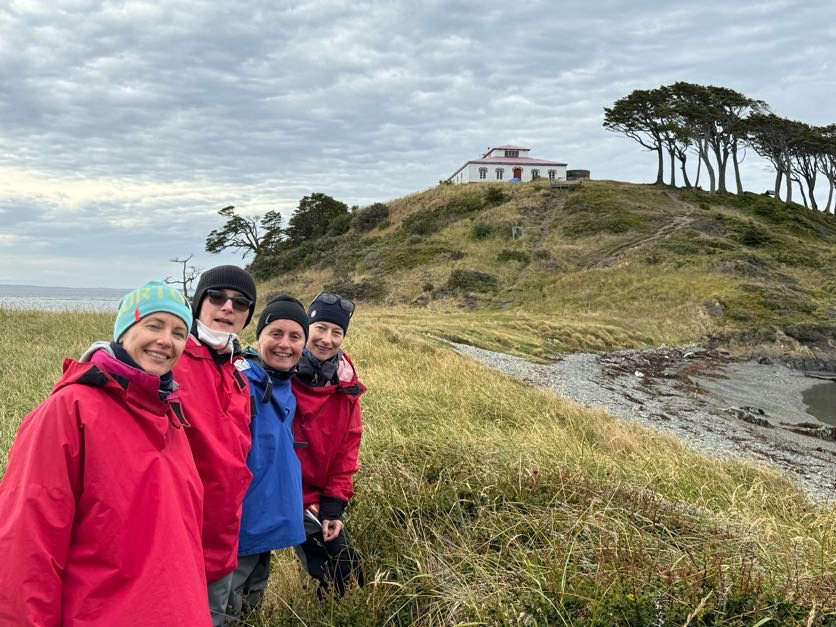 Punta Arenas, the most southern town in Chile, was our next stop. Temperatures sure dropped here, especially at 530 am, which was our meeting time for the zodiac boat ride through the Magellan Strait to see the amazing nature and animals – and hope for good weather as it is known for a crazy one! Gloves, winter hats and feather skiing jackets were on display here – and boy were we glad we brought those. The 3 people in the car were not other tourists but our guides – yeah, almost 1:1 ratio which was amazing.