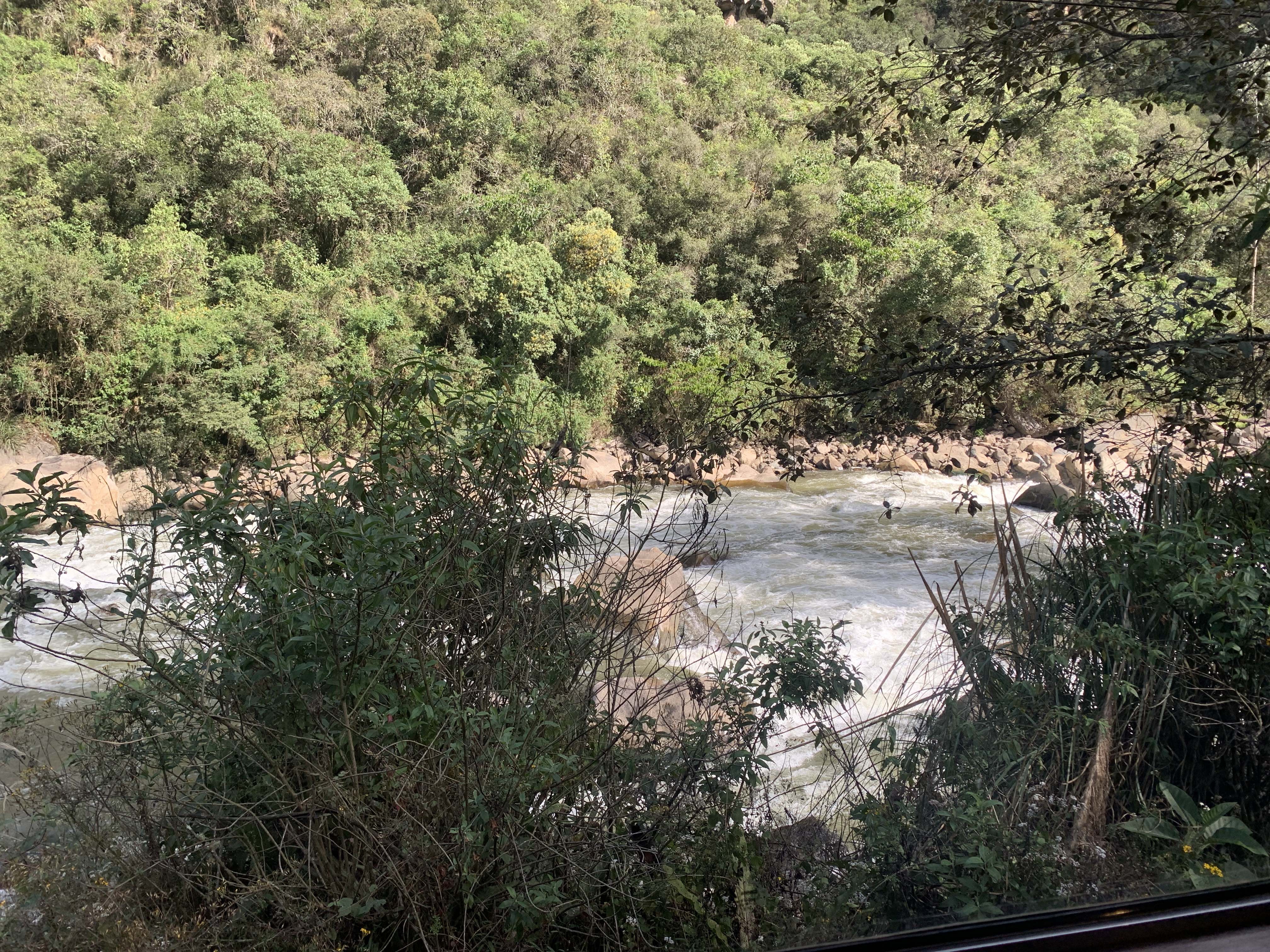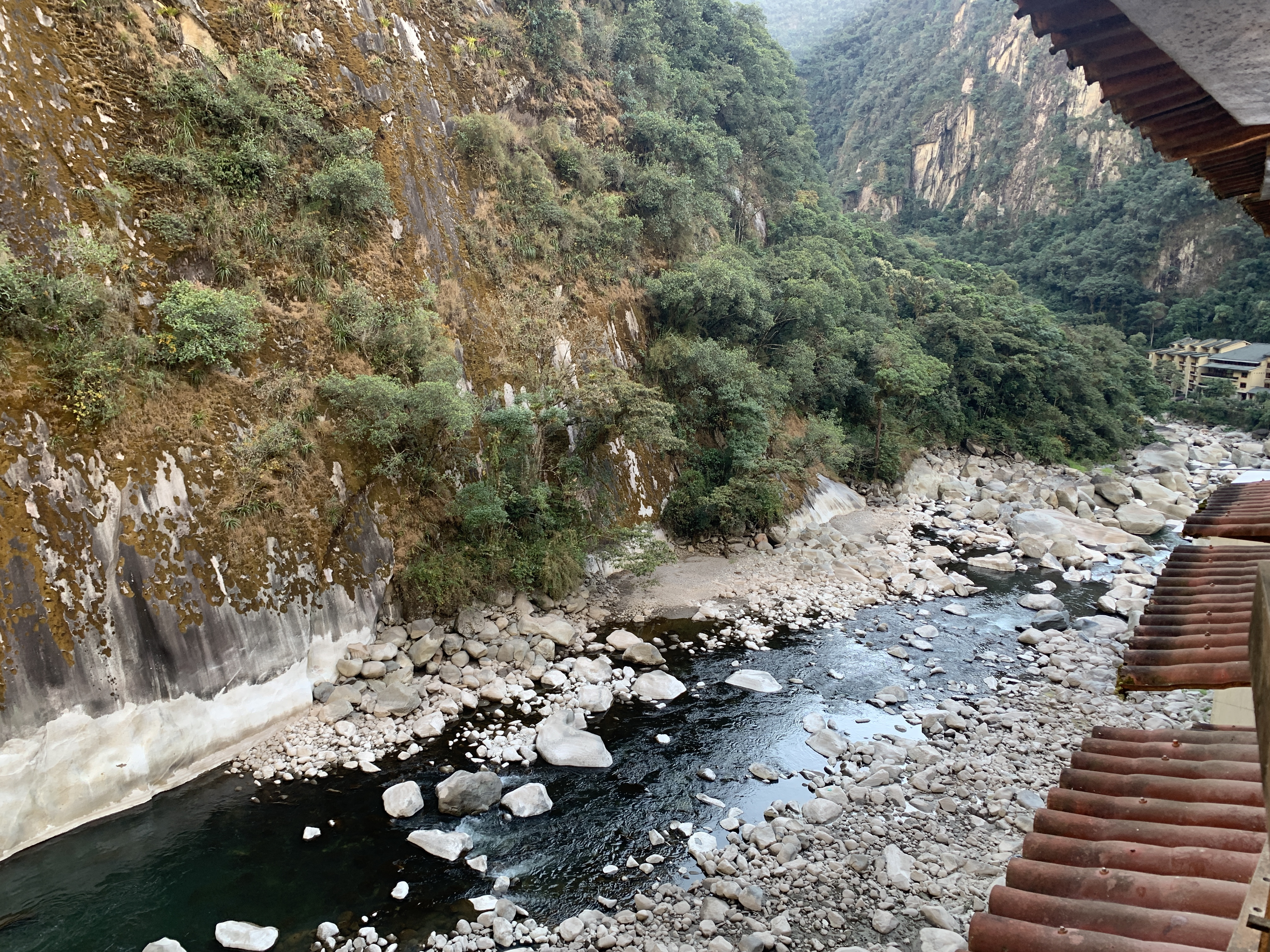 The big one, I guess. We have to do it, however little time we wanted to spend with hundreds of people in line. We took the train, of course, which was literally in our hotel. Very nice, along a river with lots of mountains everywhere – mostly tourists. An attempt for some train entertainment by the Peruvian railroad was admirable – a fashion show by the staff to sell the wool products, some very odd loud shaman-like creature jumping and dancing through the train – 1.5 hours later we are in a town deep in the mountains with lots of hippies, hikers, tourists and buses. Our hotel, Casa del Sol, is modern, small and has a view to die for. Next morning we line up with hundreds of other people to get on a bus to the entrance – this was strangely worrying in the beginning, yet surprisingly organized and quick. 20 buses every hour sounds like a lot, yet supposedly there is a limit for public. I am glad we all went light on breakfast as going up the mountain in those incredibly narrow, windy roads was not my cup of tea.
