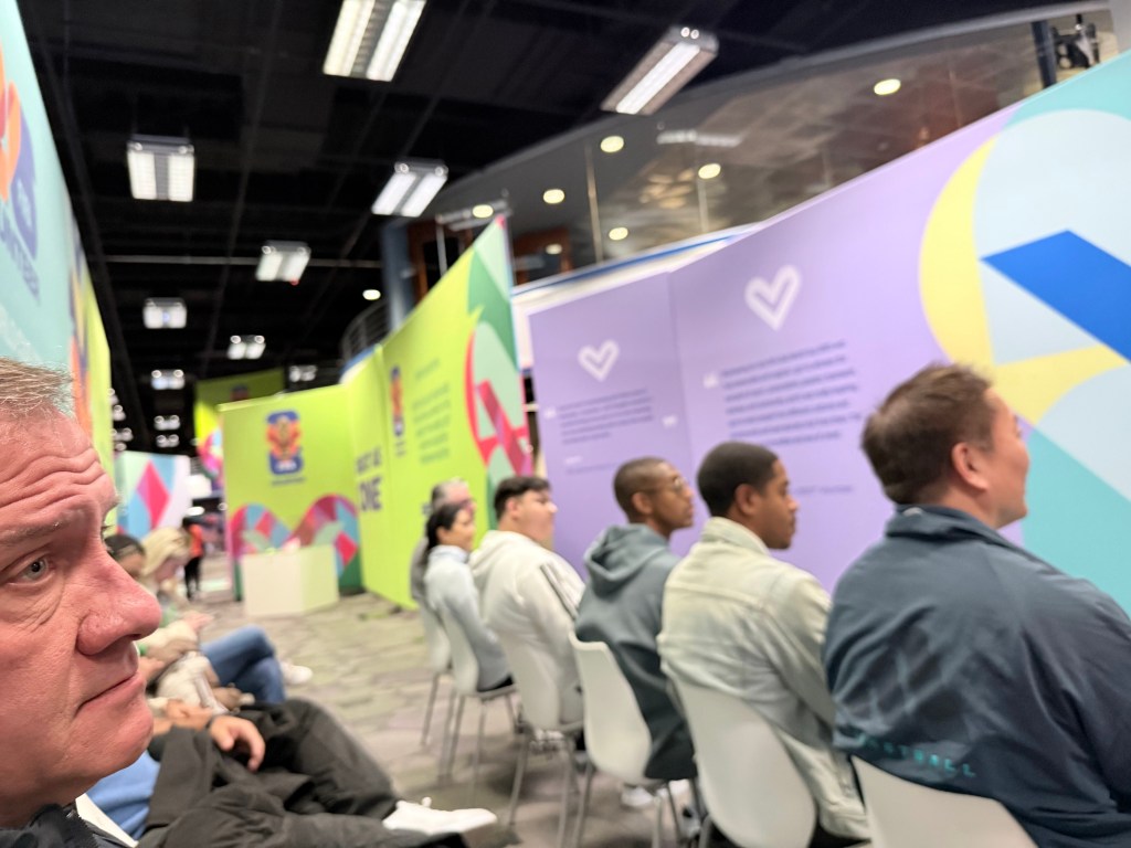 One by one we were taken to a table in a sort of a voting booth where a diverse group of people were interviewing us. This was 30 mins of a mix between your self-determined personality quiz and random questions trying to tie it to soccer.